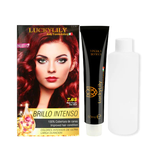 Tinte para el Cabello LuckyLily Brillo Intenso #7.65 Rojo Fuego (24pz)